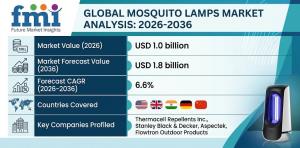 NEWARK, DE, UNITED STATES, February 27, 2026 /EINPresswire.com/ -- The global mosquito lamps market is projected to grow steadily over the next decade, expanding from USD 1.0 billion in 2026 to USD 1.8 billion by 2036, registering a CAGR of 6.6%. According to the latest analysis by Future Market Insights (FMI), growth is fueled by increasing incidence of vector-borne diseases, rising urban density, and consumer preference for non-toxic pest control alternatives.